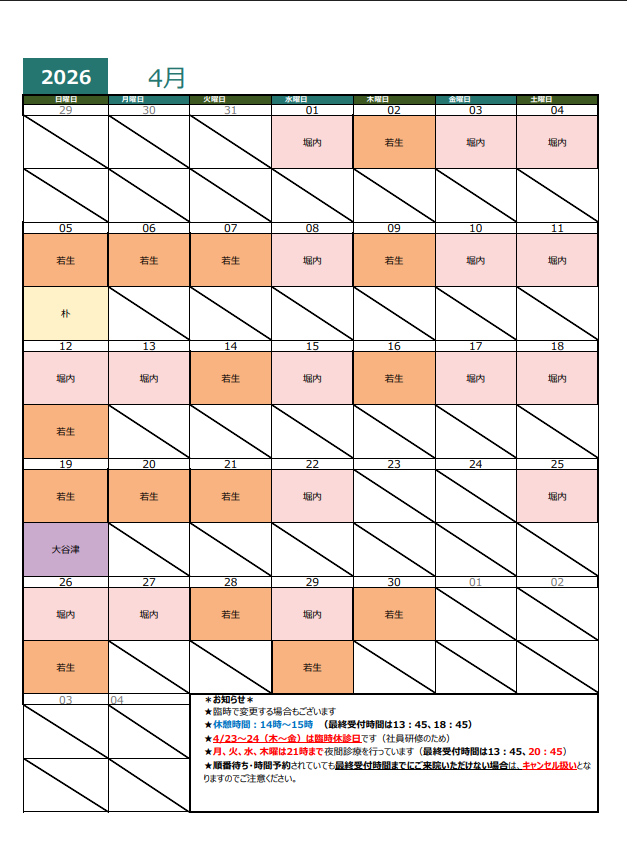 4月医師カレンダー