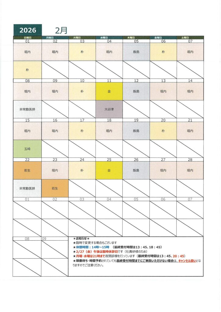 2月診療医師カレンダー